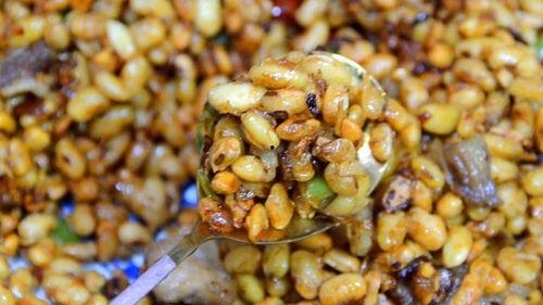 在制作过程中,火候的掌握至关重要。刚开始煮黄豆时,要用小火慢慢煮,让黄豆充分吸收水分,变得软糯。等到黄豆煮得差不多时,再开大火,加入酱料,翻炒均匀,让黄豆充分吸收酱料的味道。转小火慢炖,直到黄豆完全吸收酱料,变得金黄诱人。